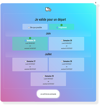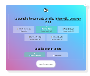 | Je valide ma commande pour une livraison Dès que possible ou pour la semaine X |
